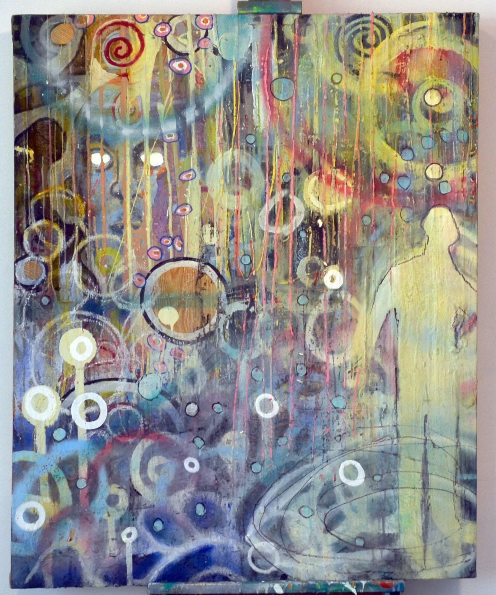 Acrylic, house paint, oil, wood, resin, and water color on wood surface